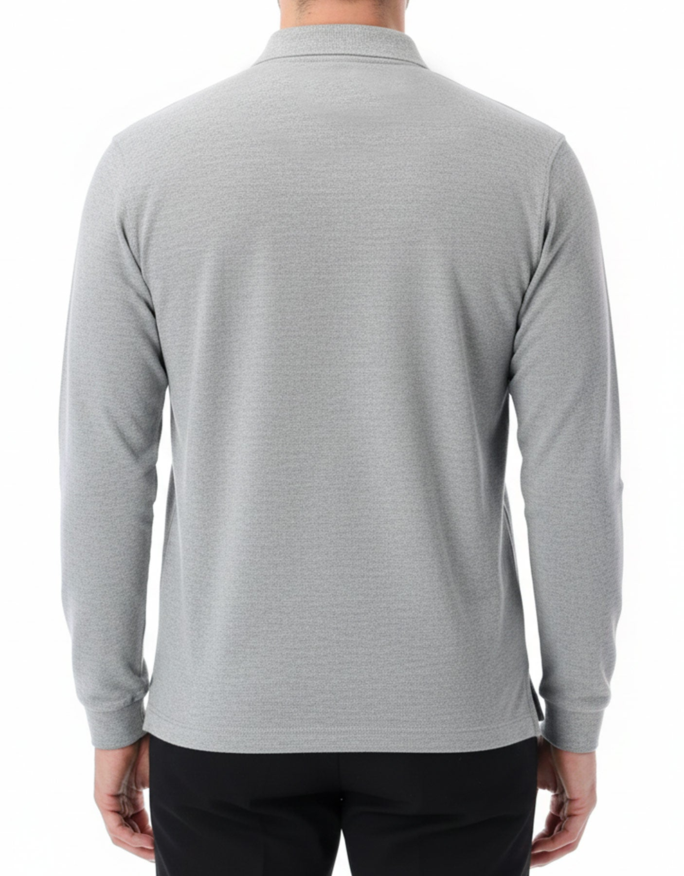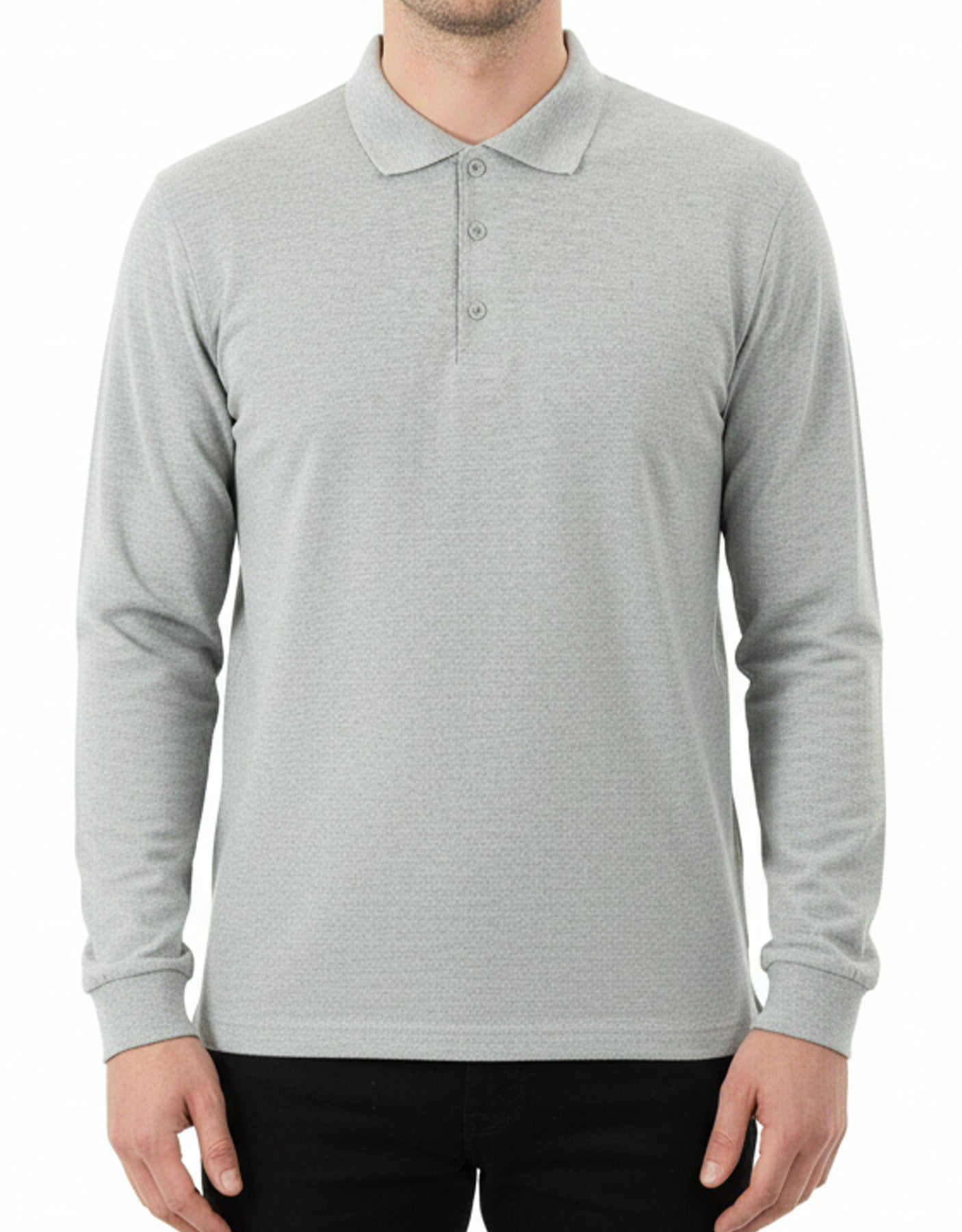 Gri Kısa Kollu Polo Yaka Tişört Baskılı - Baskısız