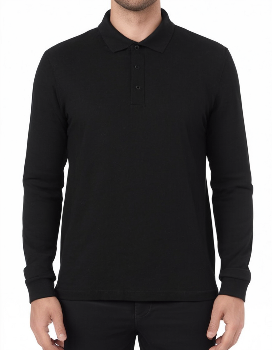 Siyah Kısa Kollu Polo Yaka Tişört Baskılı - Baskısız